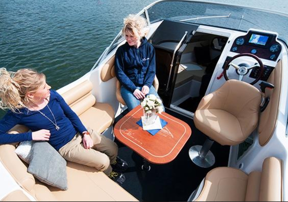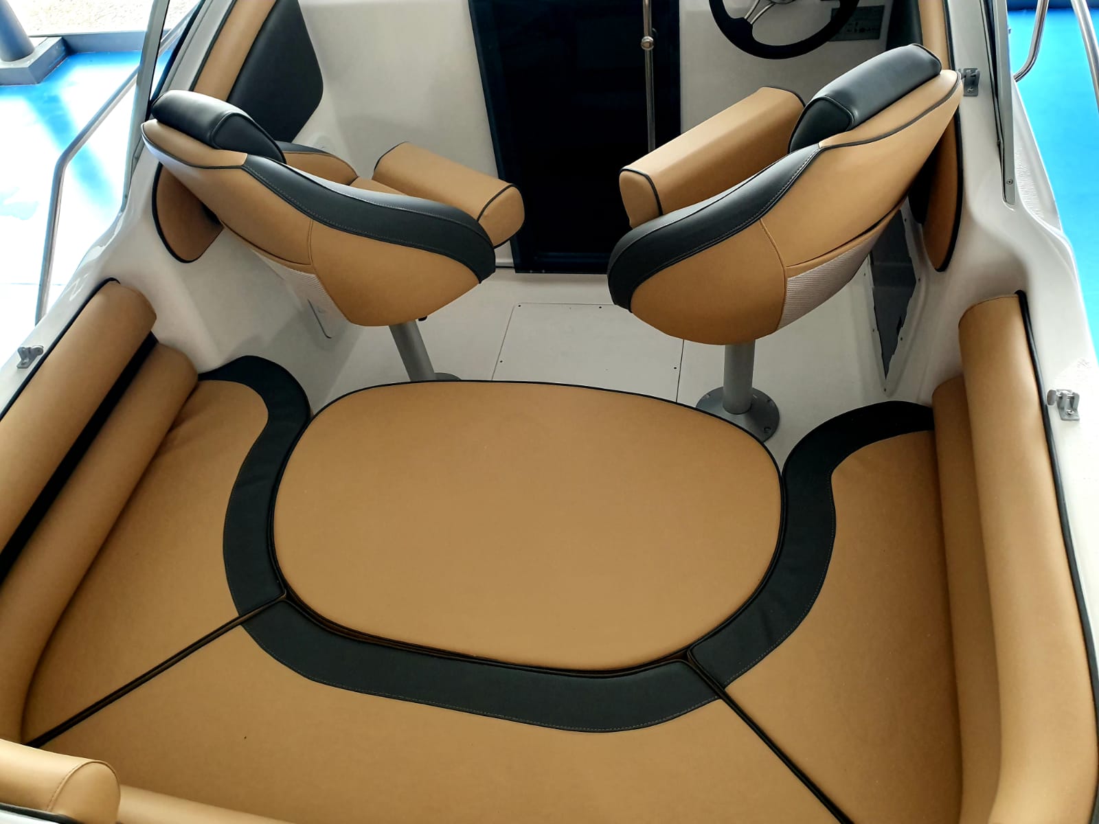 Dos asientos deportivos anatómicos y su tapizado premium completan la embarcación.